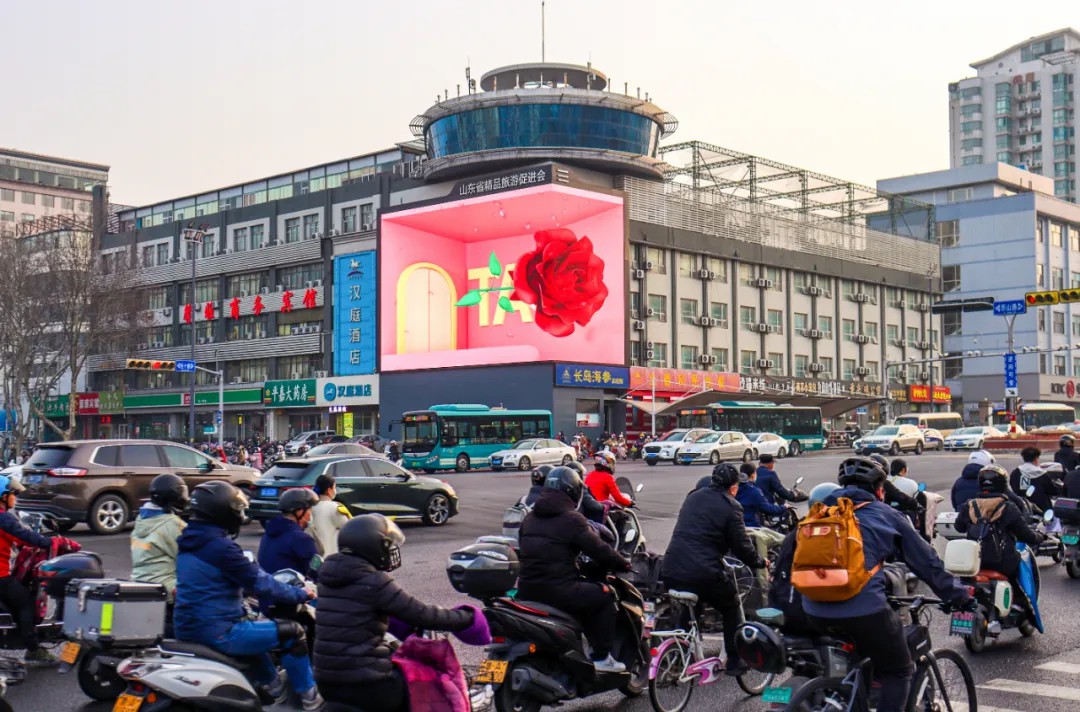 華途傳媒作(zuò)為(wèi)經十路裸眼3D大屏的媒體(tǐ)運營方,始終秉承“媒體(tǐ)有(yǒu)溫度”的經營原則,利用(yòng)媒體(tǐ)優勢,聯合品牌客戶結合節點創意聯動,媒體(tǐ)發聲,品牌發力,打造不一樣的城市溫度,以自己獨有(yǒu)的方式向這座城市表白:I❤濟南。