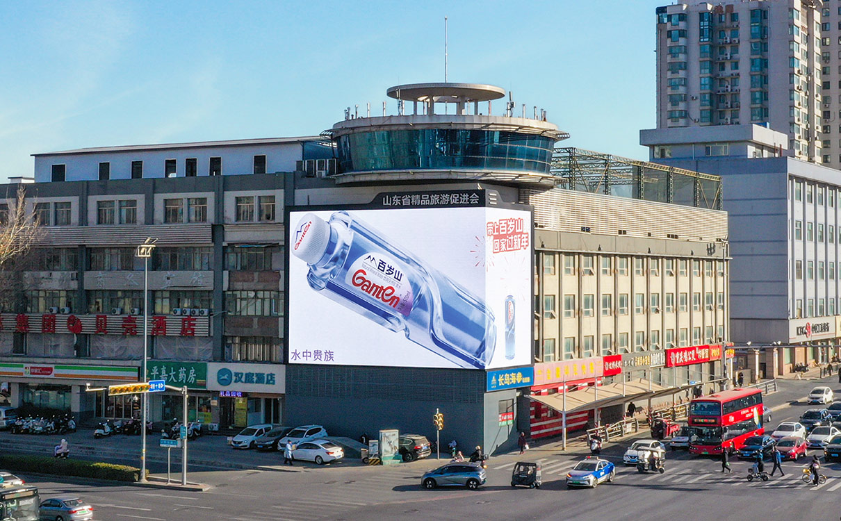 經十路與曆山(shān)路·裸眼3D戶外LED屏  上刊品牌:百歲山(shān)