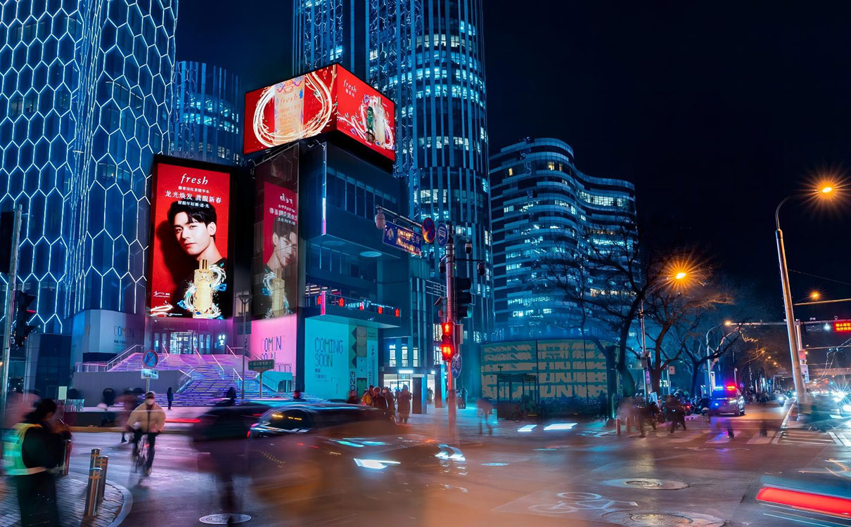 【媒體(tǐ)形式】矩形屏+直角屏聯動組合;朝向東北