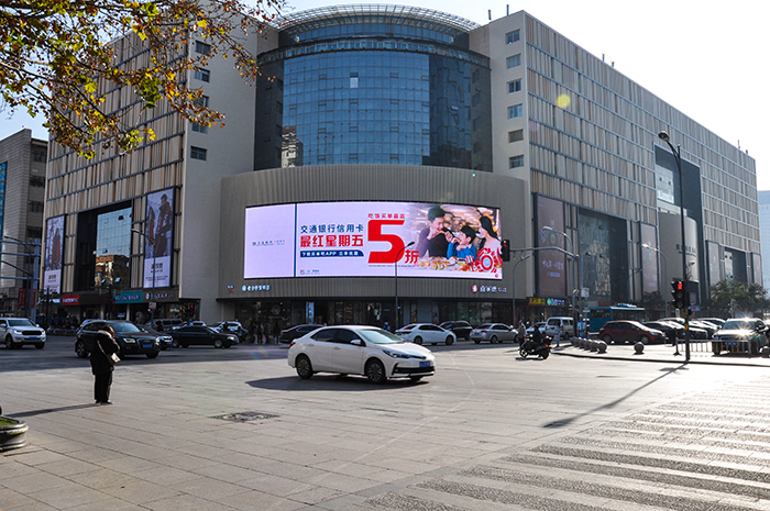 (交通銀行信用(yòng)卡投放“網紅屏”濟南泉城路世茂廣場戶外LED屏廣告)