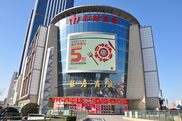(交通銀行信用(yòng)卡投放“經十屏”銀座和諧廣場戶外LED屏廣告)